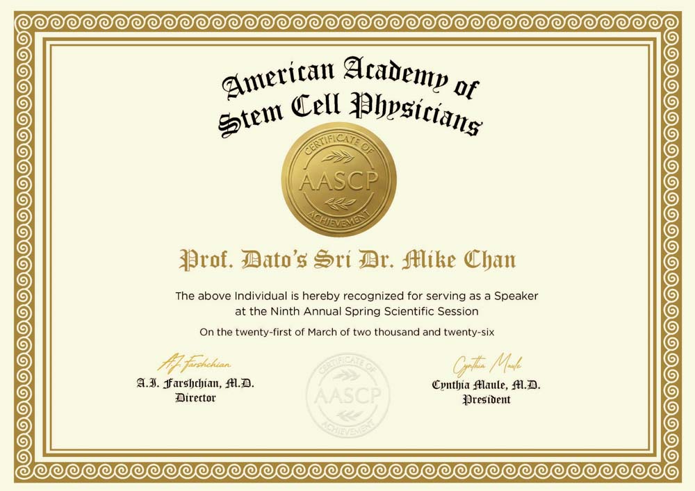 Prof. Dato’ Sri Dr. Mike Chan, a pioneering leader in regenerative medicine, was awarded the World Chinese Icon Leadership Award for Longevity Science, Biotech, Wellness & Education Entrepreneurship during the Global Chinese Economic & Technology Summit (GCET) held in Phnom Penh, Cambodia. The award, presented at the gala dinner on Tuesday, recognizes Prof. Mike Chan’s outstanding contributions to longevity science, biotechnology, wellness, and education entrepreneurship.