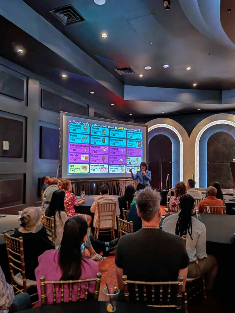 As the informative talk began, Prof. Mike Chan took the stage to unravel the complexities of the human body. His presentation provided a deep dive into the science of longevity, specifically focusing on the 76 distinct organs and the mapping of over 400 human cell types.