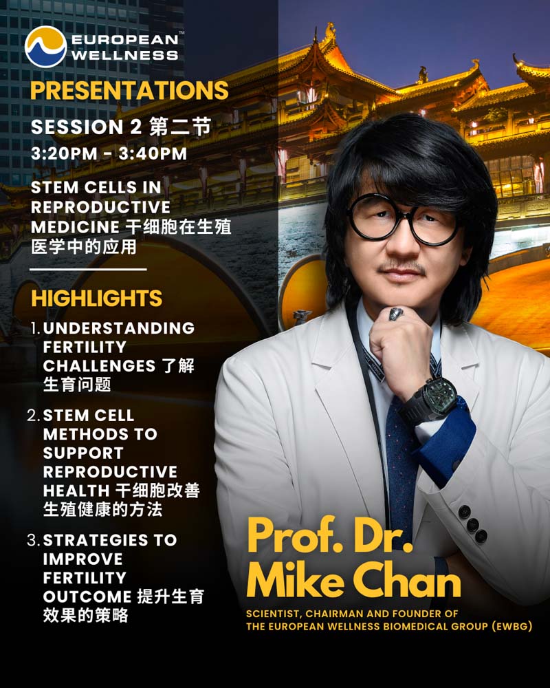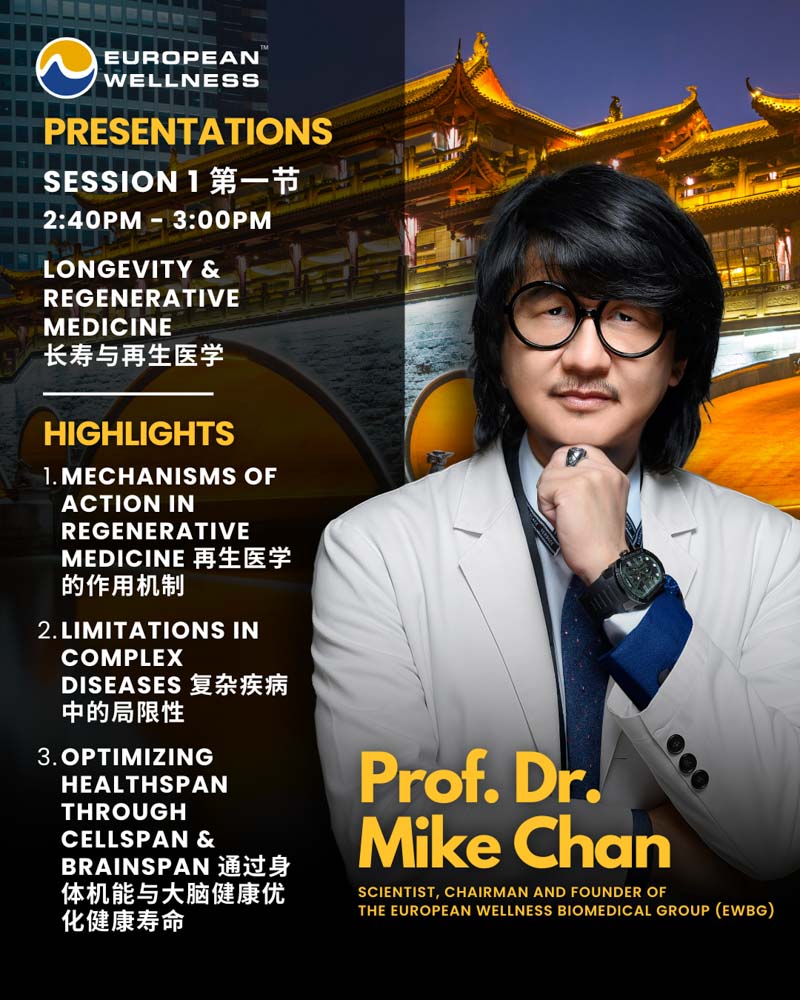 Drop by to witness our Chairman and Chief Researcher on European Wellness, Prof. Dr Mike Chan, uncovering the role of regenerative therapies and stem cells in improving longevity within wellness