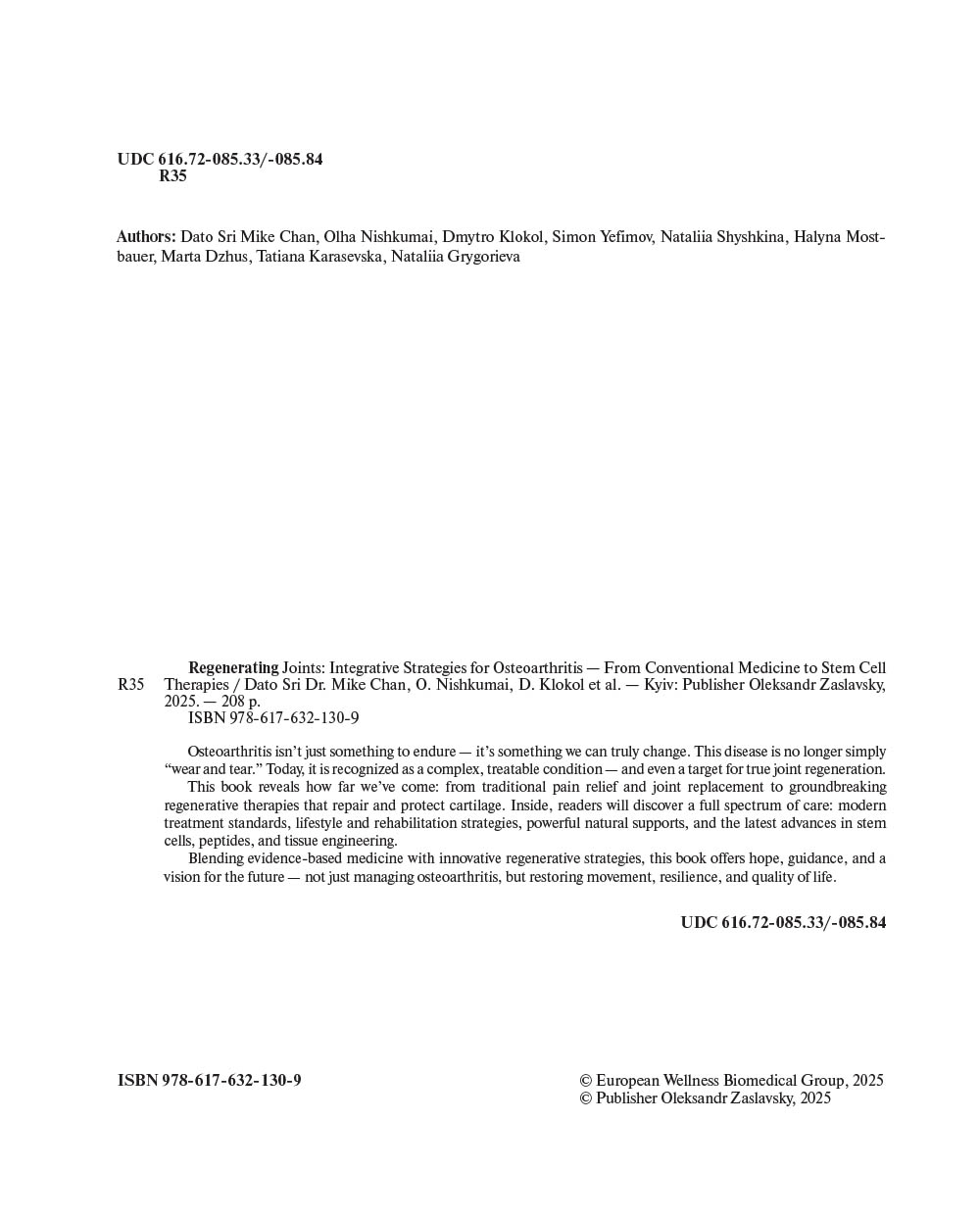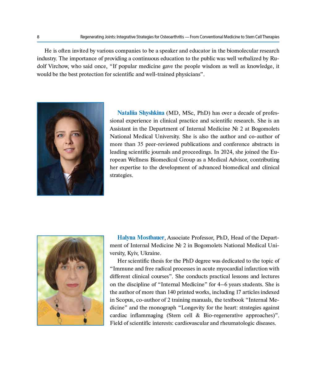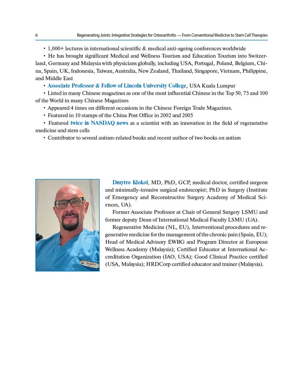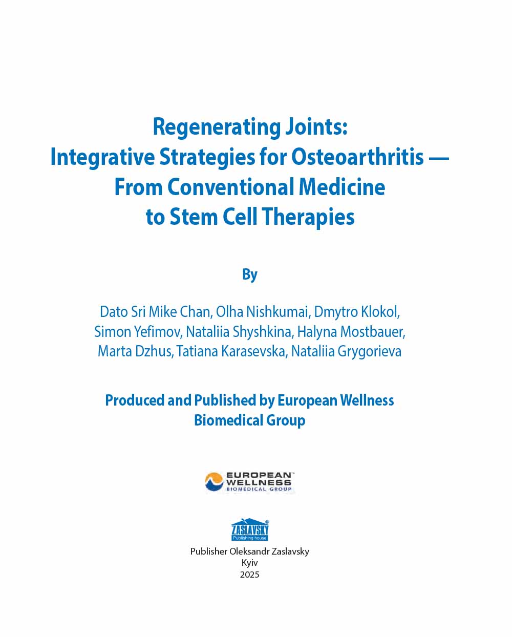 Our book presents a comprehensive and timely exploration of the evolving landscape in OA treatment. This book brings together the best of two worlds: evidence-based conventional medicine and the emerging promise of bioregenerative and cellular therapies.