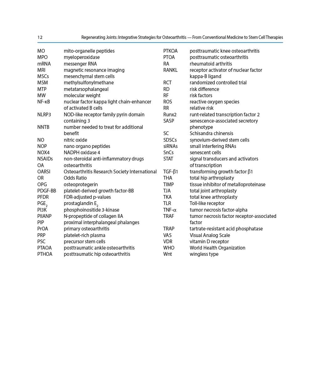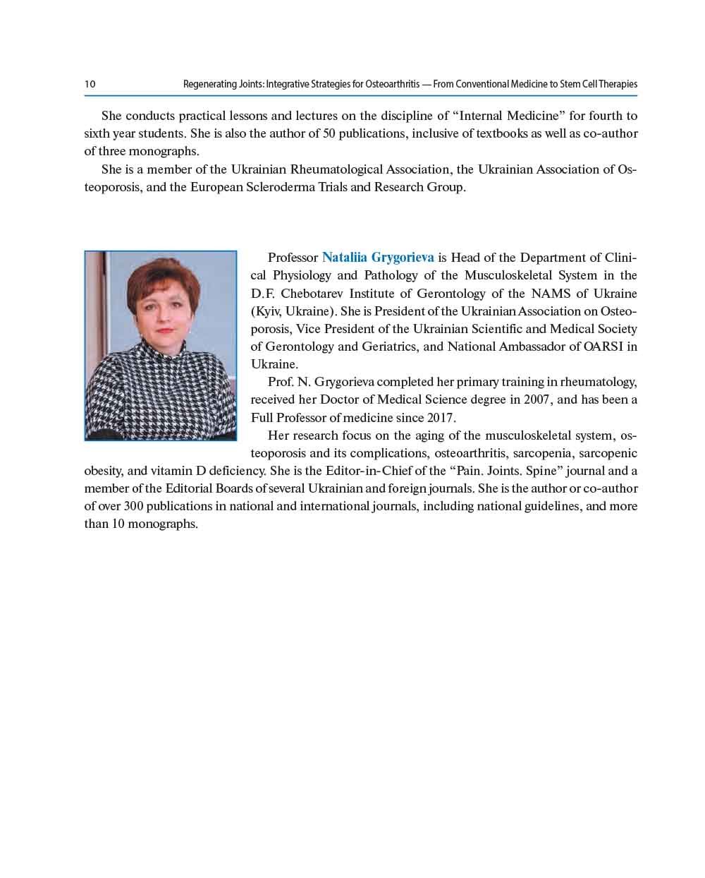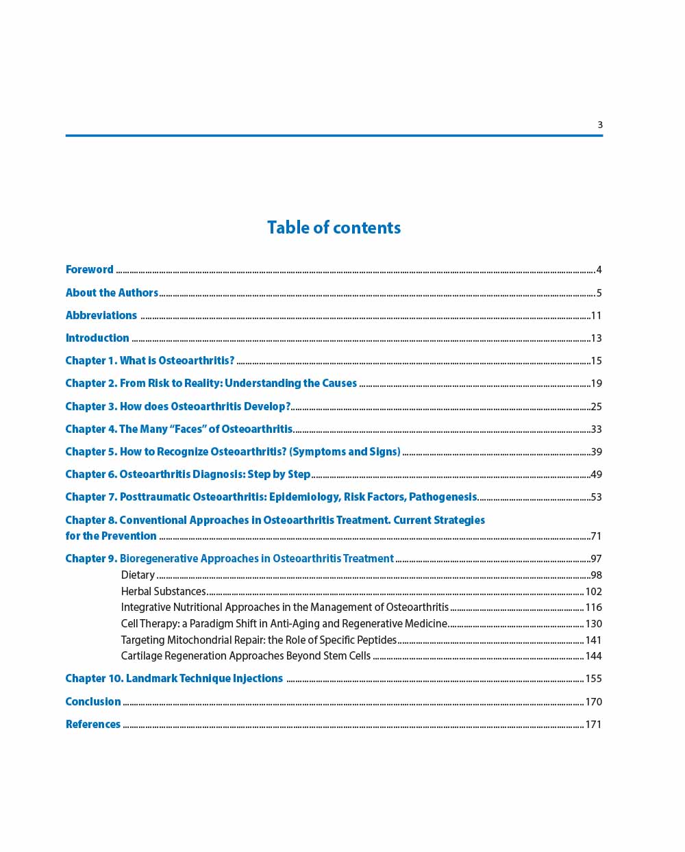 This integrative approach reflects a necessary paradigm shift. The complexity of OA requires more than a one-size-fits-all solution. By combining the wisdom of established clinical practice with the in-novation of regenerative strategies, this volume charts a path toward not just pain control, but true joint preservation and restoration.
