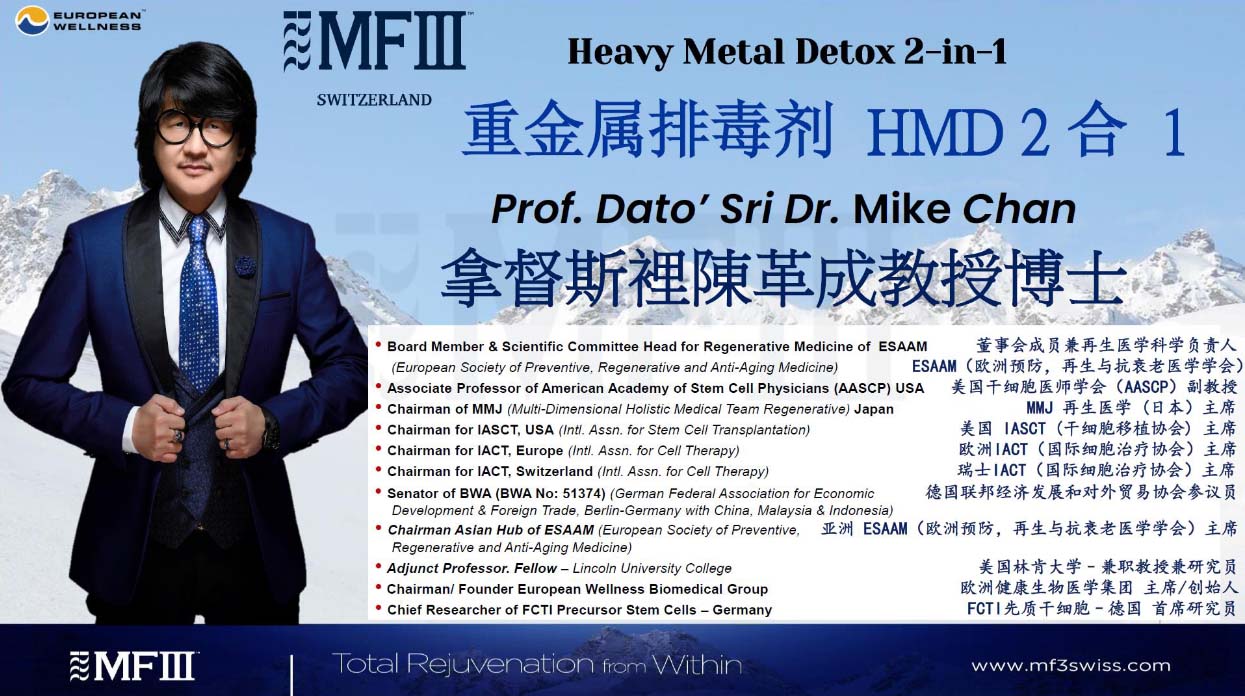 Prof. Dato’ Sri Dr. Mike K.S. Chan, Researcher, Author, and Educator, Founder and Chairman of the European Wellness Biomedical Group; Senior Technical Consultant at EWBG; Head of Scientific committee of preventive, regenerative and anti-aging medicine and Asian Chairman (ESAAM); Adjunct Professor of Lincoln University College (Malaysia); Associate Professor of AASCP, USA (American Academy of Stem Cell Physicians), Chairman for A4M, USA (American Academy of Anti-Aging Medicine) for Thailand/Asia, Japan’s Regenerative Medical Association MMJ (Multi-Dimensional Holistic Medical Team Japan) and co-Founder of FCTI Precursor Stem Cells (Europe), Author of over 70 books and over 150 publications, has experience of 45 over years in Stem cells Research in Germany, Switzerland, European Union, Soviets, China, Mexico, USA, Japan, Middle East since early 80’s, presenter for over 10000 presentations and scientific lectures globally at most major conferences of the World on anti-aging and precision medicine. He is also a pioneer in Regenerative Medicine and Cellular Therapies in a big way in the 80’s into Asia Pacific, the Middle East and Australia.